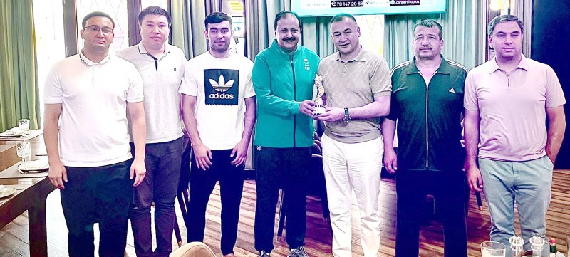 المدرب علي الزهراني أثناء تكريمه من قبل اللجنة الأولمبية الأوزبكية.