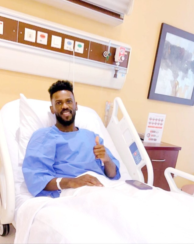 عبدالعزيز البيشي عقب العملية الجراحية أمس.