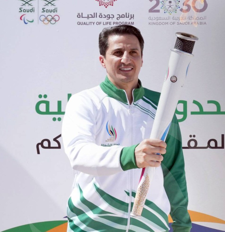 وسلّم سموه الشعلة إلى اللاعب الدولي السابق نواف التمياط ثم تسلمتها الدكتورة ميساء السويلم في شارع الأمير فيصل بن خالد بن سلطان، ثم حمل الراية عبدالعزيز الشمري، وابتسام العنزي، ومفرح الحازمي.