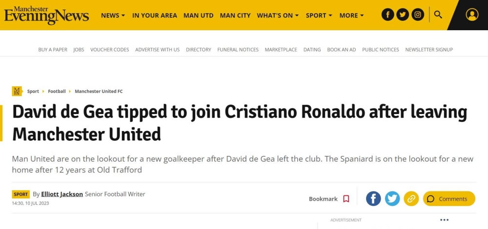 وقالت صحيفة مانشستر ايفينينغ إن دي خيا يبحث الآن عن فريق جديد بعد 12 عاما قضاها في معقل أولد ترافورد. وأكدت الصحيفة أن دي خيا يميل لخيار الانتقال إلى المملكة العربية السعودية بعد نهاية عقده مع «الشياطين الحمر».
