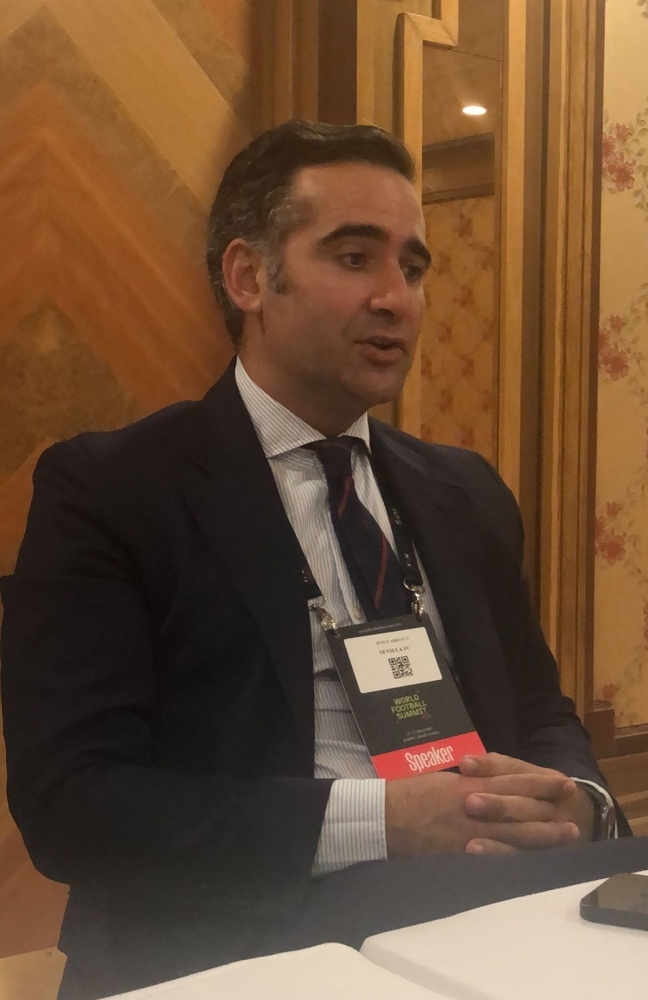 •• أعتقد أن المملكة العربية السعودية هي عنصر رئيسي في مستقبل كرة القدم، ورغم أن بعض الأندية في أوروبا ليست مرتاحة للانفجار الذي حدث في آخر فترتين لسوق الانتقالات في المملكة العربية السعودية بالتعاقد مع أسماء كبيرة، وأغلبهم من أوروبا، إلا إنني أعتقد أنه بالنسبة لمستقبل كرة القدم فإنها مفيدة، وإنها فرصة للأندية الأوروبية عموماً، والإسبانية خصوصاً؛ لإقامة علاقات قوية وطويلة الأجل مع الأندية السعودية ومع الاتحاد السعودي لكرة القدم، لا سيما أن لدينا حلماً هنا في كأس العالم 2034م الذي سيقام في المملكة العربية السعودية، ومن وجهة نظري أعتقد أن هناك العديد والعديد من الجوانب التي تظهر لنا أن المستقبل هو أن تكون هناك علاقة جيدة مع هذا الممثل الرئيسي الجديد السعودية لهذه الصناعة. وفيما يتعلق بنادي إشبيلية فنحن لدينا خطة عمل واضحة، إذ إننا نستقطب اللاعبين الشباب ونساهم في نموهم الكروي ووصولهم لمرحلة النضج الكروي، ومن ثمَّ نفتح المجال اللاعبين للانتقال لأحد فرق القمة الخمسة في أوروبا؛ مثل ريال مدريد وبرشلونة وغيرهما، ونحن نعتبر إشبيليه بمثابة الجسر لهؤلاء اللاعبين، فعبور الجسر أكثر أماناً للوصول للجهة الأخرى من النهر؛ لأنه إذا أراد اللاعب أن يقفز فإنه لن يصل. إنها فرصة جديدة، الممثل الرئيسي لمستقبل الكرة السعودية الذي أنا أكثر من متأكد من أنه ستكون له علاقة لا تصدق مع الأندية في أوروبا، هذه على الأقل وجهة نظرنا، وأود أن أضيف أن مدينة إشبيلية لها علاقة خاصة بالسعودية للتشابه الكبير؛ لأن مدينتنا تتمتع بثقافة لا تصدق وتقاليد إسلامية، وتملك مباني أندلسية بحكم أننا جزء من مدينة الأندلس الإسلامية، لذلك أنا أكثر من متأكد من أننا على الطريق الصحيح للحصول على علاقة قوية ولا تصدق مع الأندية في المملكة العربية السعودية.