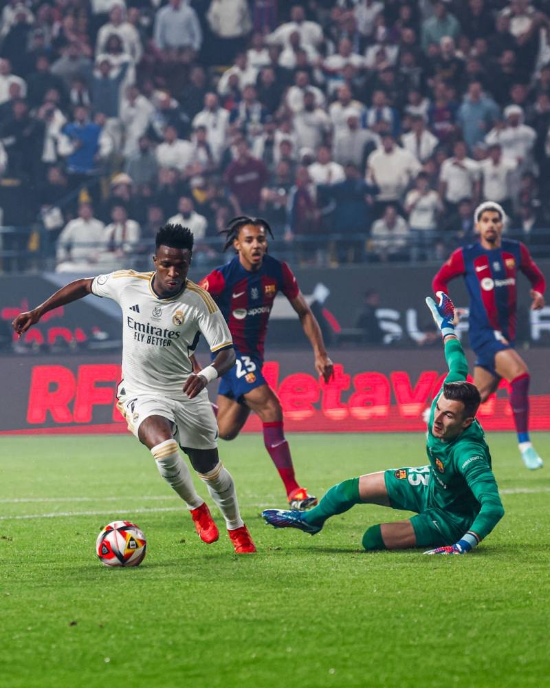 وبدأ «الكلاسيكو» الذي تابعه فوق مليار مشجع برغبة قوية من ريال مدريد الذي تمكن من إحراز هدفين في الدقائق العشر الأولى. ووضع فينيسيوس جونيور اسمه بحروف من ذهب في نهائيات السوبر الإسباني عندما تمكن من إحراز «هاتريك» في الشوط الأول (د:٧ و١٠ وركلة جزاء - د:٣٩). ورغم تمكن برشلونة من تقليص النتيجة عن طريق مهاجمه روبرت ليفاندوفسكي (د:٣٣)، إلا أن ذلك لم يشفع للبرسا للعودة للمباراة. وأضاف النجم الشاب رودريغو غوس الهدف الرابع لفريقه الملكي (د:٦٤). وتحصل لاعب برشلونة رونالدو أوراخو على بطاقة حمراء (د:٧١)، لينتهي اللقاء بفوز ريال مدريد بأربعة أهداف لهدف.