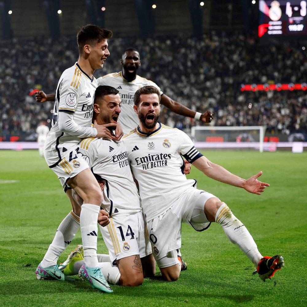 اكتسح ريال مدريد نظيره برشلونة في «كلاسيكو الأرض» برباعية مقابل هدف، في نهائي كأس السوبر الإسباني الذي شهده استاد «الأول بارك» بالرياض.