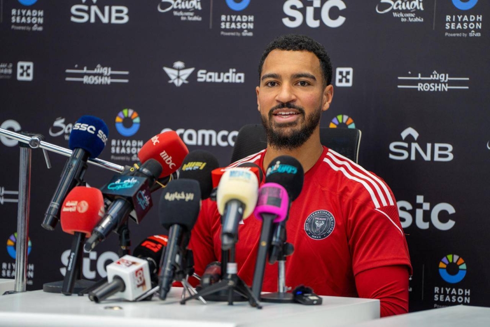 وفي المؤتمر الصحفي الذي أقيم لفريق إنتر ميامي في مقر نادي الشباب السعودي، شكر حارس الفريق دريك كالندر المملكة على الترحيب الكبير الذي وجده الفريق منذ وصوله حتى اليوم، مشيراً إلى أن زيارته للمملكة تعد أول تجربة سفر له في هذا الجزء من العالم، مؤكداً أن اللعب ضد فريق سعودي يعد تجربة جديدة، وأن الفرق السعودية مميزة، ويتوقع أن يكون اللقاء رائعاً.