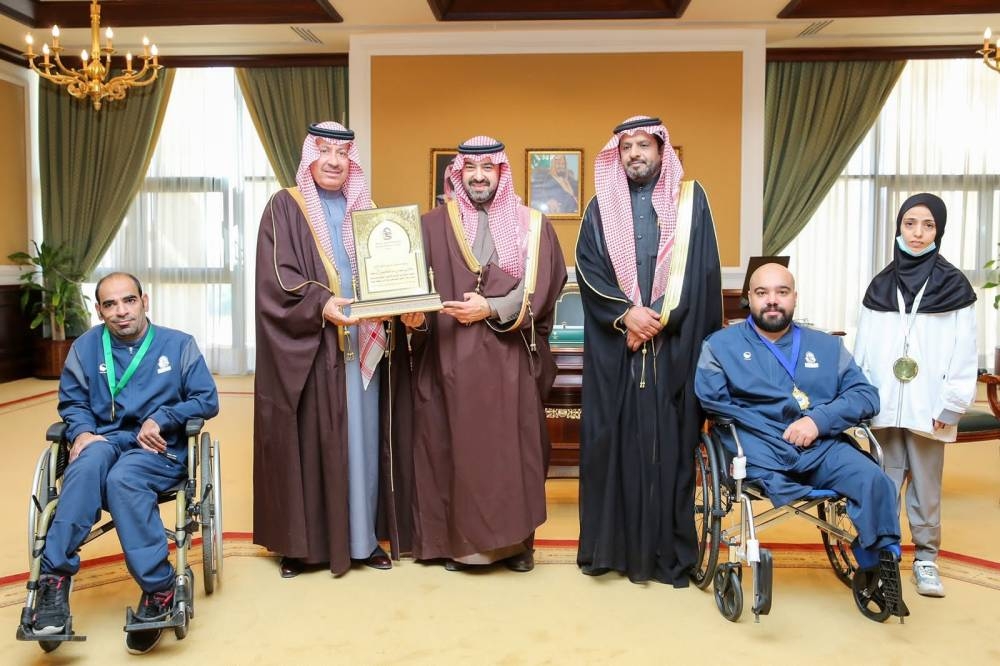 وثمن الأمير خالد بن سعود ما حققه نادي ذوي الإعاقة بالمنطقة أخيراً من إنجازات تستحق الفخر في مختلف الألعاب، منوهاً بما تلقاه هذه الفئة الغالية من رعاية واهتمام ودعم من خادم الحرمين الشريفين الملك سلمان بن عبدالعزيز، وولي العهد، مُشيدًا بجهود النادي في توفير جميع احتياجات اللاعبين، متمنيًا لهم التوفيق لخدمة الأشخاص ذوي الإعاقة بما يجعلهم أفرادًا فاعلين في المجتمع، مؤكداً على دعم جميع أعمال النادي من قبل إمارة المنطقة والجهات المعنية بالمنطقة وتسخير كافة الإمكانات لإنجاح أعمالهم.