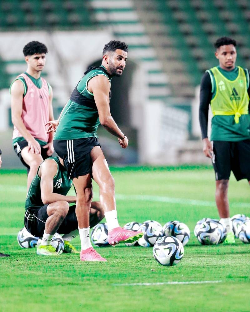 النجم رياض محرز في تدريبات الأهلي أخيراً.