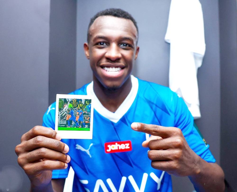 سعود عبدالحميد يستعرض صورة احتفاليته بهدفه الثاني في العميد بنصف نهائي كأس الملك.