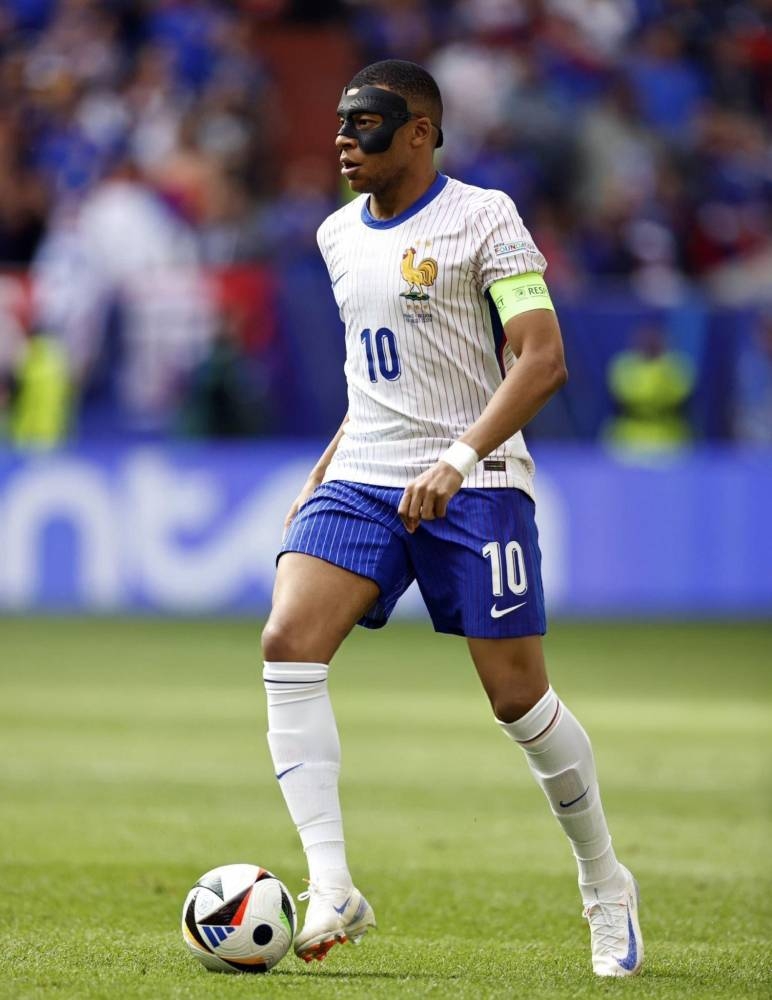 في البداية، ظهر مبابي مرتديا قناعا صنع خصيصا له، يحمل ألوان العلم الفرنسي. لكن القناع لم يدم طويلا لمخالفته قواعد الاتحاد الأوروبي لكرة القدم (UEFA) التي تنص على وجوب أن تكون معدات الحماية بلون واحد، ليتحول قناع مبابي إلى قناع أسود كامل ضد منتخب بولندا.