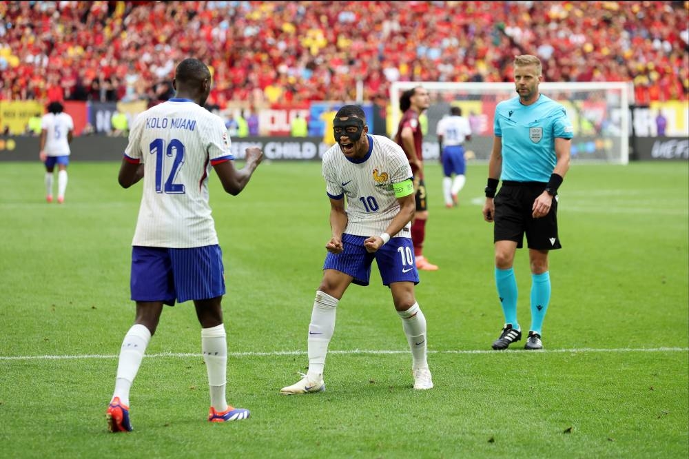 وارتدى كابتن فرنسا قناعا ثالثا مختلفا أمس الأول (الإثنين)، خلال انتصار منتخبه 1-0 على بلجيكا في دور الـ16. وخابت كل مساعي مبابي لهز الشباك في 5 محاولات على المرمى أمام بلجيكا. ويمتلك مبابي هدفا يتيما فقط في رصيده بالبطولة.