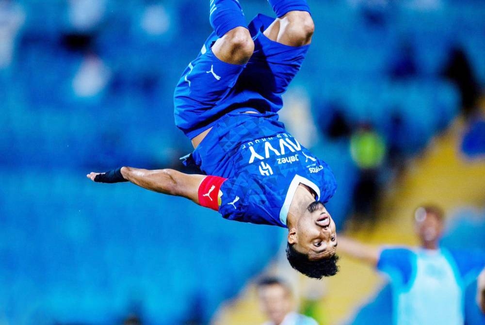 قائد الهلال سالم الدوسري محتفلا بأحد أهدافه الموسم الحالي