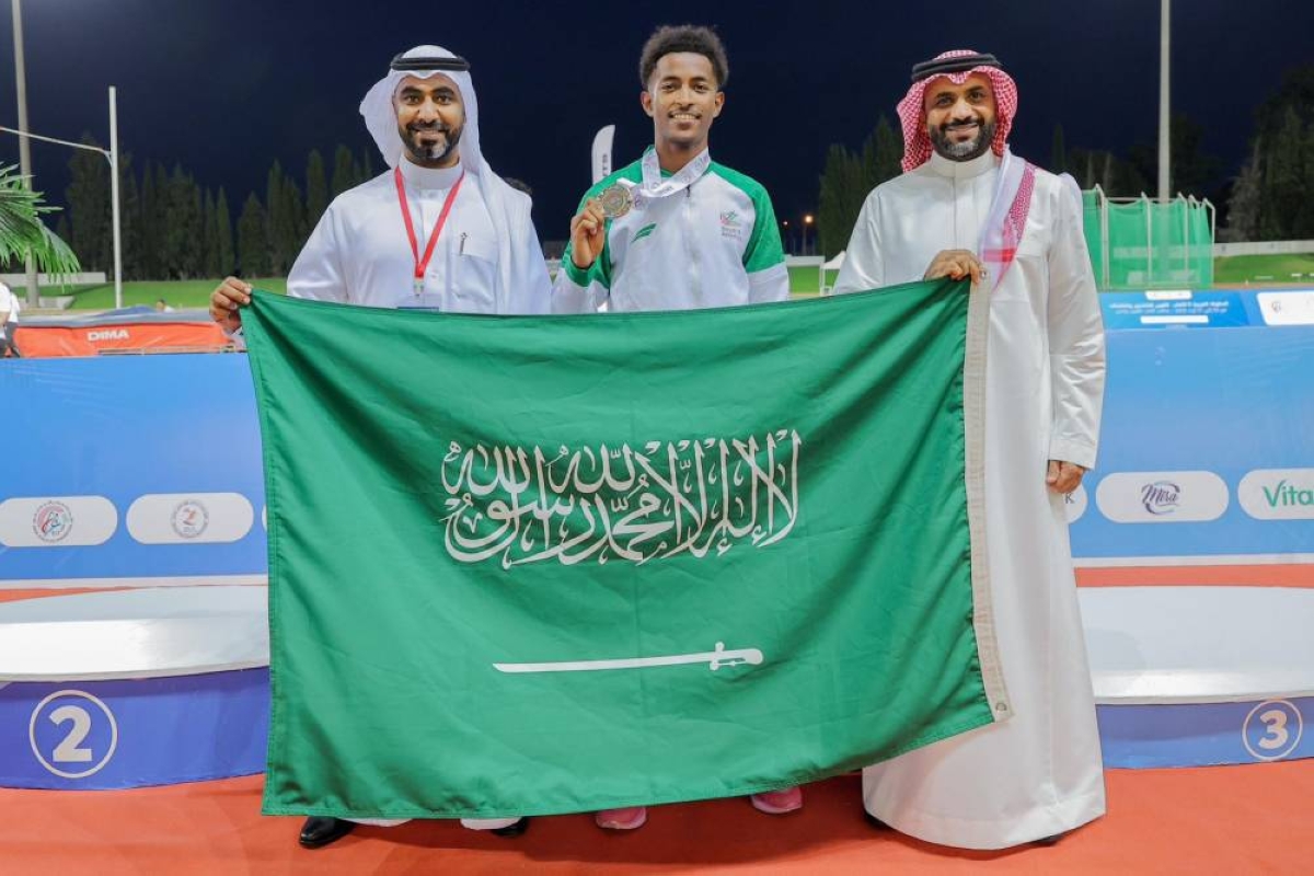 Hassan Isa Haqwi won first place and the gold medal in the 110m hurdles with a time of 13.71 seconds, while Mishal Abdullah Hazazi was crowned first and won the gold medal in the 400m with a time of 47.27 seconds. Mubarak Salem Al-Yami also achieved first place and the gold medal in the 100m with a time of 10.56 seconds, and Abdulrahman Adam secured first place and the gold medal in the long jump with a leap of 7.05 meters.