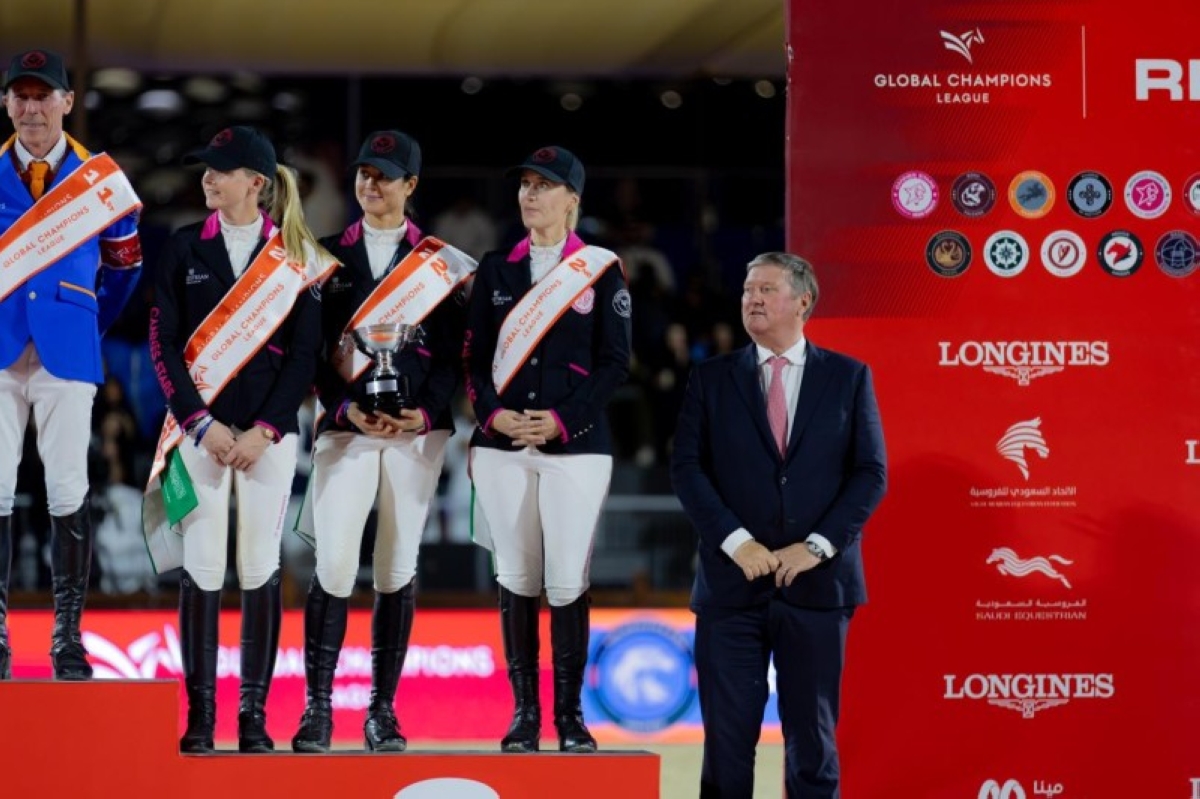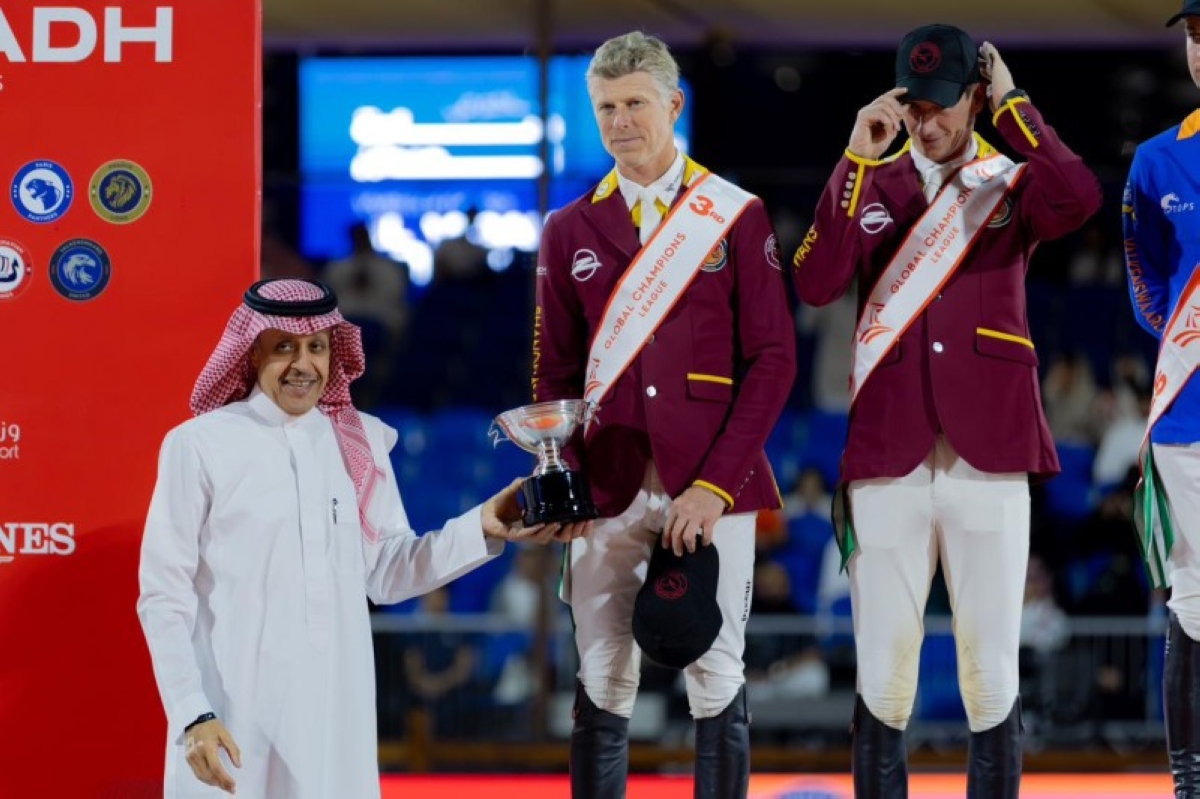 The Chairman of the Board of the Saudi Equestrian Federation, Prince Abdullah bin Fahd bin Abdullah, today (Thursday) crowned the Valkenswaard United team as the champion of the Global Champions League in the 5-star category during the final round of the Longines Global Championship in Riyadh.