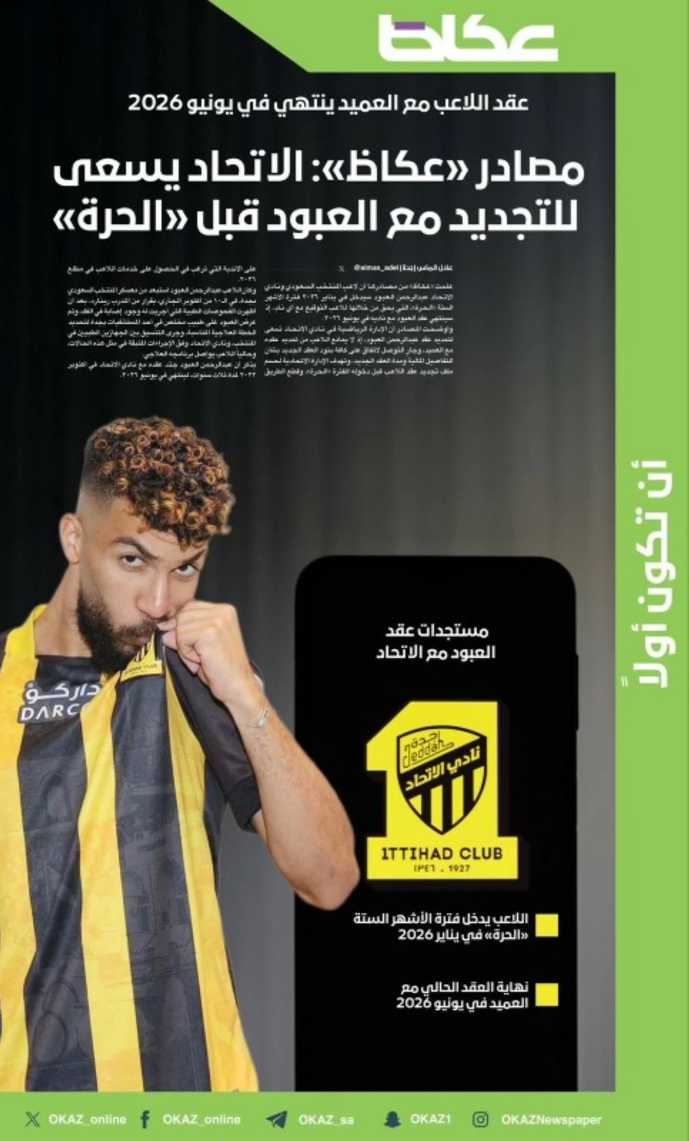 On October 18, "Okaz" highlighted that the sports administration at Al-Ittihad Club opened the file for extending the contract of player Abdulrahman Al-Aboud before he enters the six-month "free" period in January, during which the player has the right to sign with any club, before the end of his contract with his current club in June 2026.