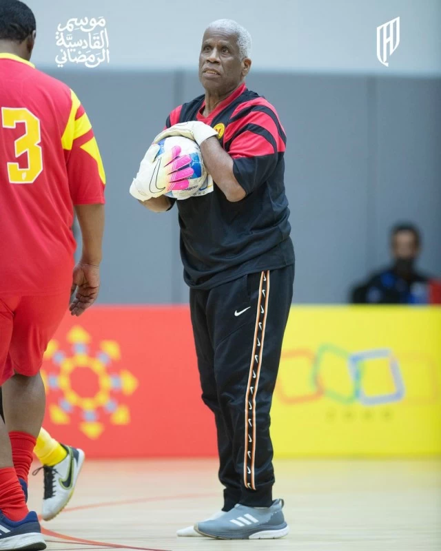 The Al-Qadsiah Club has brought back the veteran Bahraini goalkeeper Hamoud Sultan to his first love, football, and wearing gloves to save shots, as he participated in the charity match dedicated to the late star Ali Fail. This was part of the third edition of the Al-Qadsiah Ramadan season, in a gesture of loyalty that reflects the club's and the sports community's appreciation for his career and contributions on the field. The match brought together a constellation of former Al-Qadsiah stars and several players from clubs in the Kingdom and the Gulf countries, in a Ramadan atmosphere characterized by love and loyalty, led by former international star Yasser Al-Qahtani alongside a group of names that left their mark on the fields, including Mohammed Al-Farhan, Abdulrahman Bourshaid, Bandar Al-Khalidi, Ghazi Asiri, Aref Bourshaid, Fahd Al-Shami, Habib Al-Safwani, Mohammed Al-Dal'an, Saleh Al-Qanbar, Hussein Al-Sadiq, Yusuf Al-Jami'a, Khamees Eid, Hamoud Sultan, Zaid Al-Muallad, Fawzi Al-Shahri, Saeed Al-Wadani, Khalid Al-Haranda, Ahmad Al-Ruwai'i, and Abdu Hakami.