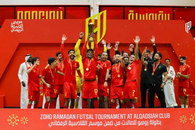 Member of the Board of Directors of Al-Qadisiyah Club, Faisal Al-Nughaimish, crowned the Al-Qadisiyah team with the title of the Zoho Futsal Championship, maintaining the title he achieved in the previous edition, after a well-deserved victory over his counterpart, Ghadran Group, with a score of 6-3 in the final match held as part of the Al-Qadisiyah Ramadan Season in its third edition. The match witnessed a distinguished technical level and great excitement between the two teams, and Al-Qadisiyah succeeded in asserting its superiority throughout the course of the match, decisively winning by six goals to three, confirming its excellence and deserving the trophy. Thus, the Ramadan season in its third edition concludes, which was held under the patronage of the Emir of the Eastern Province, amidst a wide audience attendance of 127,000 visitors from families and individuals. The season featured a diverse array of community initiatives, religious and sports competitions, events, and social activities, with substantial cash prizes allocated for them.
