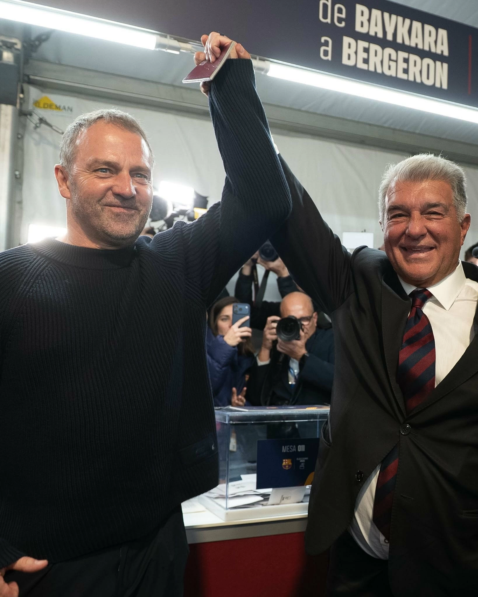 لم يتوقع محبو نادي برشلونة أن يحسم «خوان لابورتا»، انتخابات رئاسة النادي الكاتلوني، بهذا الفارق الكبير عن منافسة فيكتور فونت، الذي حصل على 29.52 ٪ مقابل ٦٨،٤٧ ٪ من أصوات الناخبين، رغم التوتر الذي سبق الانتخابات بين الطرفين، ليبقى «خوان لابورتا»، في سدة رئاسة النادي حتى ٢٠٣١، حيث لعب المدرب «هانسي فيلك» دوراً مهماً في هذا الفوز التاريخي بعد التغير الجذري للفريق الأول منذ وصوله بعد مواسم الإحباط والابتعاد عن منصات التتويج، إلى منافس قوي في جميع البطولات، حيث لم يكتفِ الفريق بالتتويج بلقب الدوري الإسباني الموسم الماضي، ولكنه تمكن من إعادة صياغته مجدداً بالاعتماد على اللاعبين الذين تم تصعيدهم إلى الفريق الأول، والذي عزز حظوظ «لابورتا»، الذي قدّم نفسه منذ أول مناظرة على أنه المدير القادر على قيادة المشروع الرياضي للنادي بكل شجاعة.