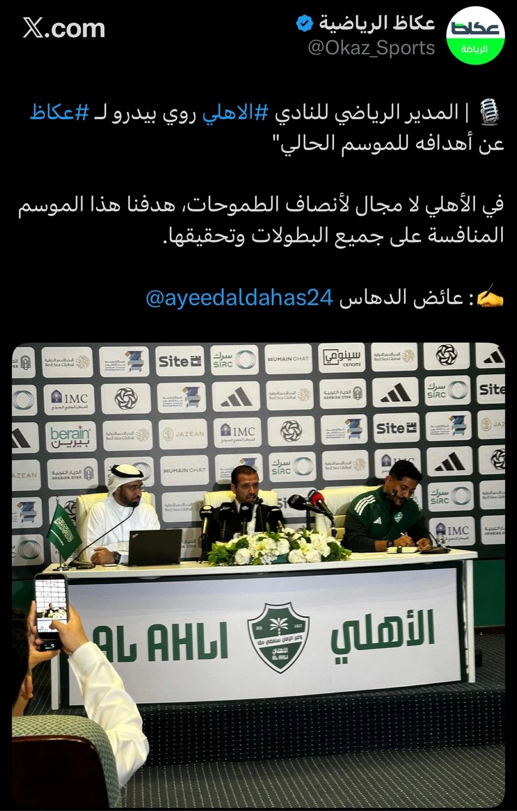 Al-Ahli's exit from the tournament comes after previous statements made by the club's sports director, Rui Pedro, to Okaz newspaper, in which he confirmed that the team aims to compete in all tournaments during the current season, emphasizing that the club's ambitions do not have a specific limit.