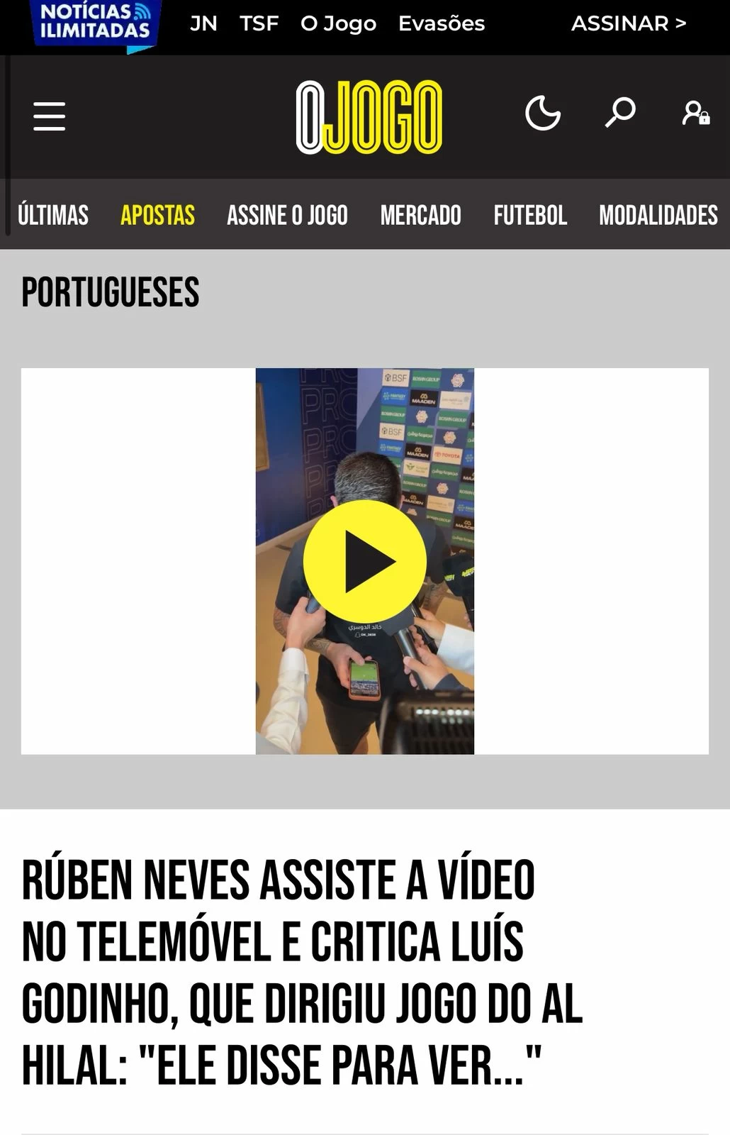 أما منصة «Bola na Rede» البرتغالية فقد ذهبت إلى أبعد من ذلك، معتبرة أن تصريحات روبن نيفيز تمثل انتقاداً صريحاً للأداء التحكيمي، إذ شدد اللاعب على أن اللقطة التي سبقت الهدف الثاني للتعاون تتضمن «مخالفة واضحة»، وهو ما يعكس حالة من عدم الرضى داخل معسكر الهلال تجاه بعض القرارات التحكيمية.