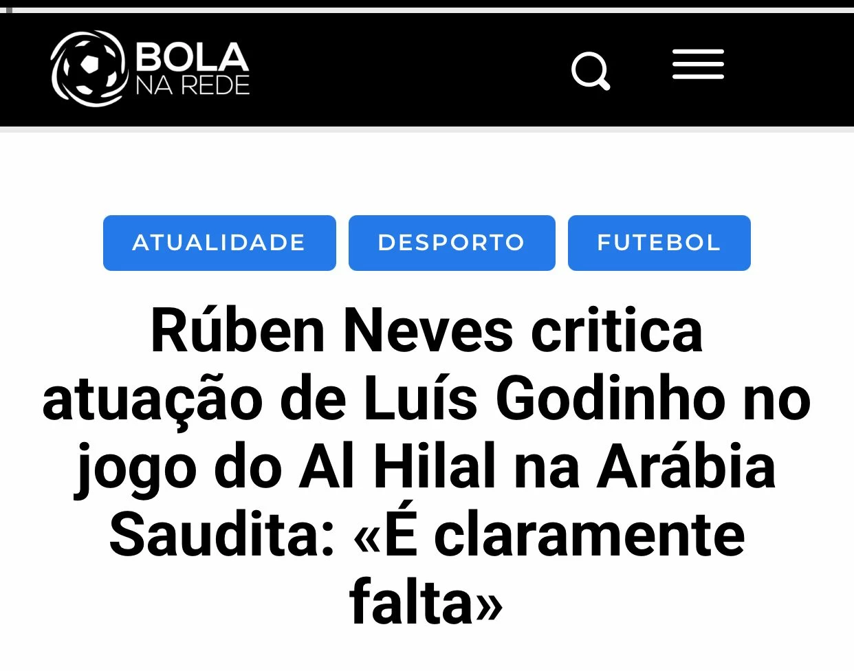 Meanwhile, the Portuguese platform "Bola na Rede" went even further, considering that Ruben Neves's statements represent an explicit criticism of the refereeing performance, as the player emphasized that the incident preceding Al Taawoun's second goal involved a "clear foul," reflecting a state of dissatisfaction within the Al Hilal camp regarding some refereeing decisions.
