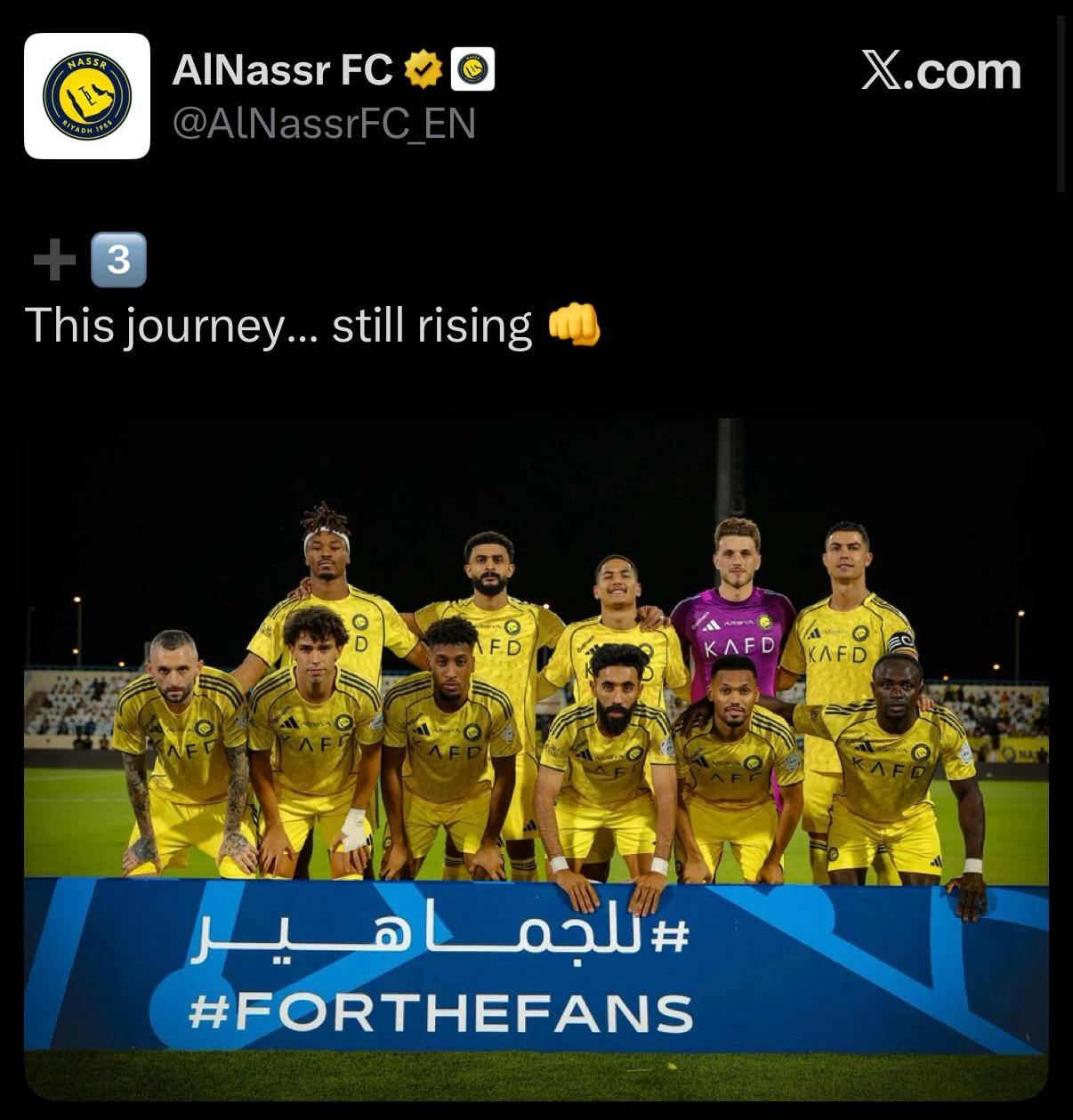 وجاء المنشور بعبارة: «العمل خلف الكواليس يجعل النصر يتألق»، وهي صياغة فسرتها جماهير النصر على أنها تحمل إيحاءات تتعلق بأفضلية غير داخل الملعب، ما دفع موجة من الردود الغاضبة والتفاعل الكبير عبر المنصة، في وقت يعيش فيه الفريق النصراوي حالة فنية مستقرة عقب فوز عريض عزز صدارته ووسع الفارق النقطي مع منافسيه.