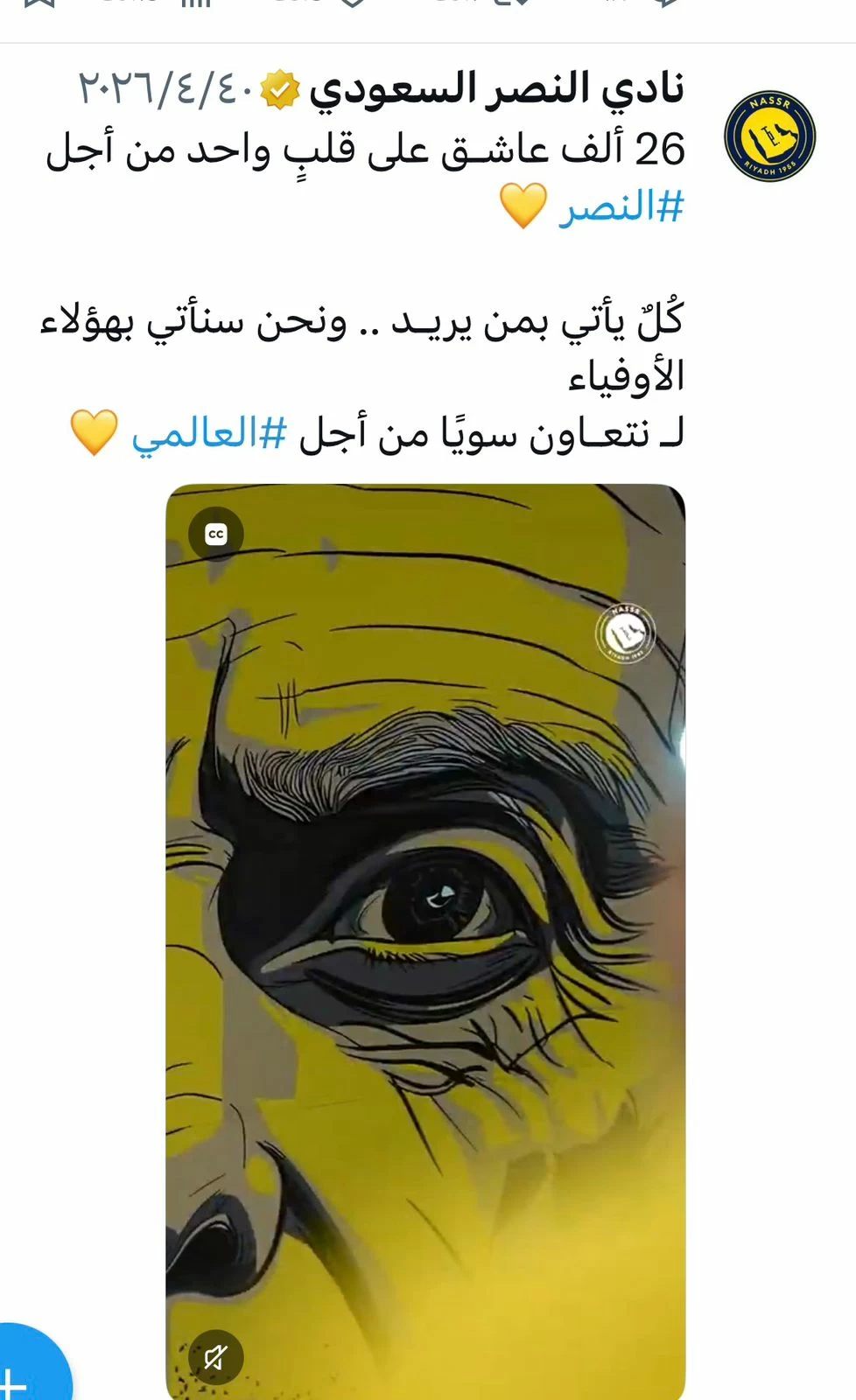 "26,000 lovers with one heart for Al-Nasr. Everyone comes with whom they want... And we will come with these loyal ones... Let’s cooperate together for the global." The phrase "Let’s cooperate" became the center of the controversy due to its alignment with the team's name and its timing following the match.