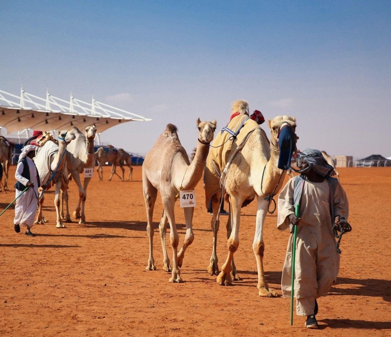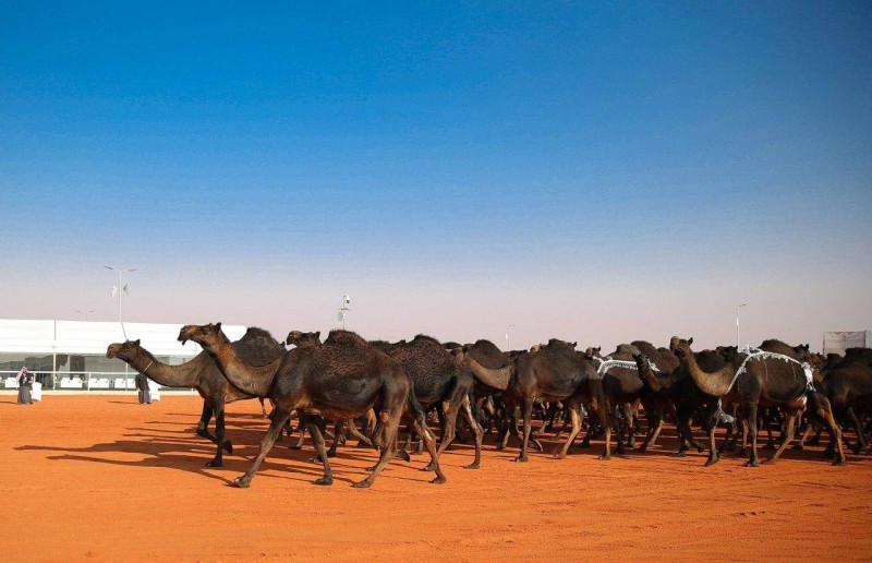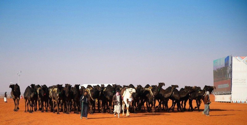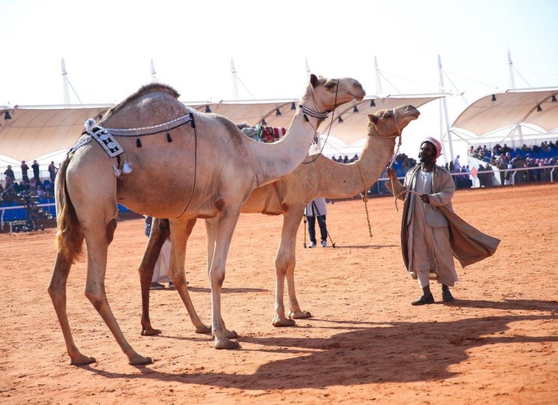 خطف حمد عوضة علي المري جائزة مسابقة فئة جمل (100 بيرق المؤسس) لون مجاهيم بمهرجان الملك عبدالعزيز للإبل، بعد تحقيقه المركز الأول في المسابقة التي جرت اليوم (الاثنين) بمشاركة 12 منقية.
