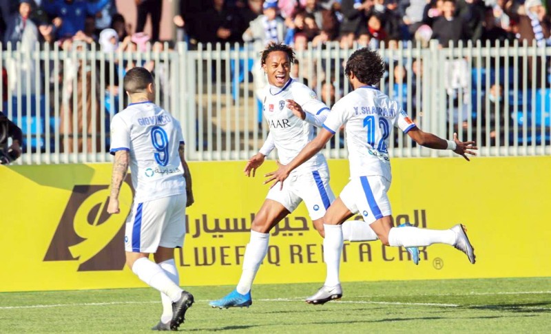 لاعب الهلال كاريلو ينطلق فرحا بهدف السبق لفريقه في مرمى أبها.