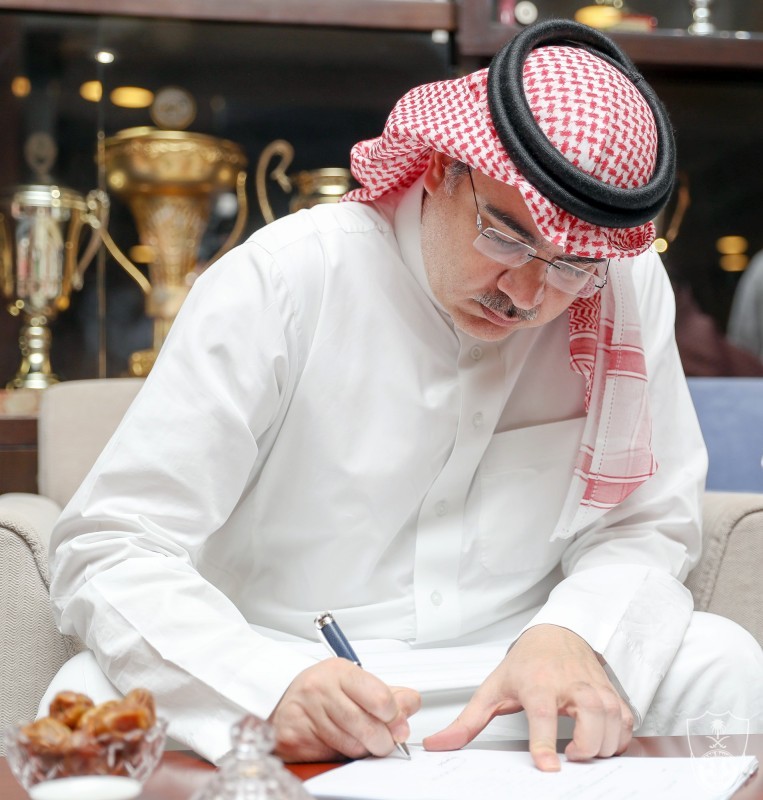عبدالإله مؤمنة لحظة تعبئة استمارة الترشح لرئاسة النادي الأهلي.