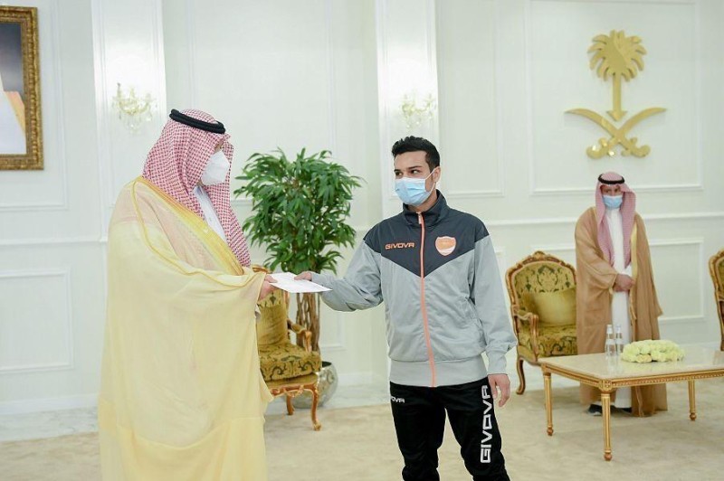 وفي نهاية الاستقبال قدم الأمير فيصل بن خالد بن سلطان مكافآت مالية للاعبي وجهاز فني نادي عرعر بمناسبة الصعود لدوري الأمير محمد بن سلمان للدرجة الأولى، ثم التقطت الصور التذكارية بهذه المناسبة.