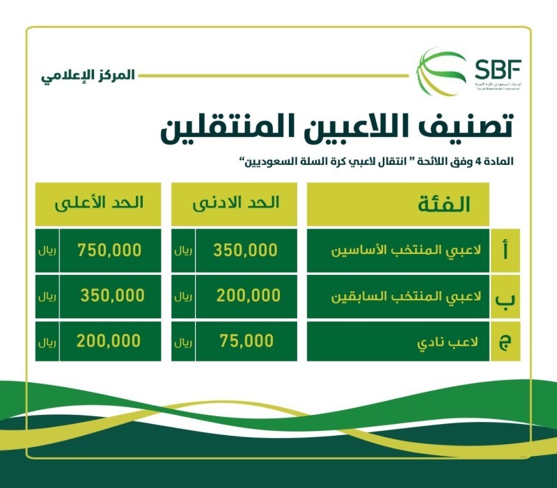 حدد الاتحاد السعودي لكرة السلة المواعيد الخاصة بالفترة الزمنية لآلية إجراءات انتقال اللاعبين السعوديين، وذلك على النحو التالي: تقديم الطلبات للاتحاد للاعبين الراغبين في الانتقال من: 17 – 25 / 02 / 1442هـ الموافق: 4 – 12 / 10 / 2020.