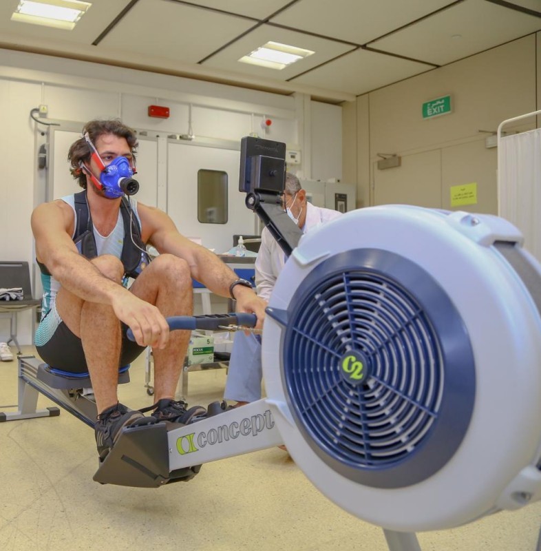 وأجرى حسين عدداً من اختبارات القياس الفسيولوجية في كلية العلوم في جامعة الملك سعود في الرياض، يأتي ذلك ضمن جهود الاتحاد السعودي للتجديف، في تجهيز لاعبيه وفق أعلى المستويات.
