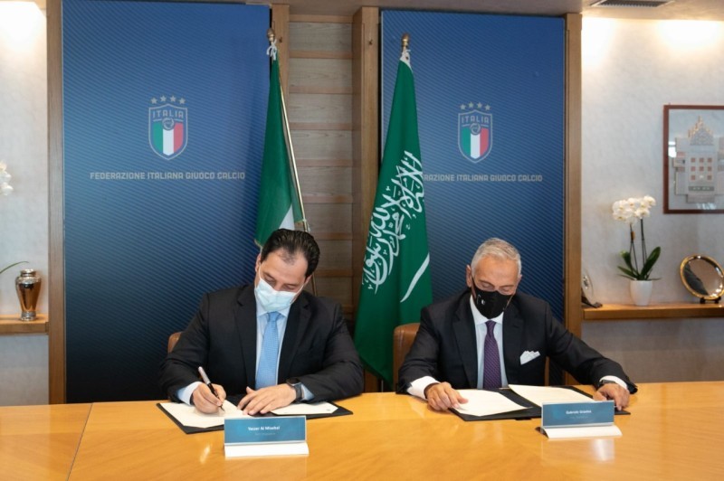 بحضور الأمير عبدالعزيز بن تركي الفيصل وزير الرياضة، رئيس اللجنة الأولمبية العربية السعودية، وقّع الاتحادان السعودي والإيطالي لكرة القدم اليوم الثلاثاء 27 أكتوبر 2020م، مذكّرة تفاهم لتعزيز العلاقات الرياضية بين البلدين، عبر تطوير وصناعة كرة القدم الحديثة.