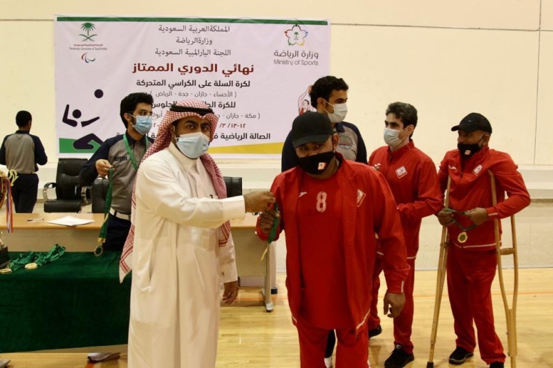 وعقب نهاية المباراة الأخيرة للبطولة، والتي انتهت بفوز الرياض على جدة 55 ـ 47 ، توج المدير الإداري للجنة البارالمبية رشيد البداح ونائب رئيس اللجنة الفنية بندر المغيصيب الفرق الفائزة بالمراكز الثلاثة الأولى، حيث نال نادي الرياض كأس البطولة والميداليات الذهبية، وحل جدة ثانياً. كما حقق نادي مكة بطولة الدوري الممتاز لكرة الطائرة من الجلوس التي أقيمت على الصالة نفسها بعد فوزه في المباراة الأخيرة على نادي جدة بنتيجة (2 ـ 0).