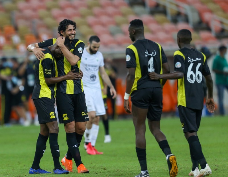 فرحة لاعبي الاتحاد بالفوز على الأهلي. (تصوير: عبدالغني بشير)
