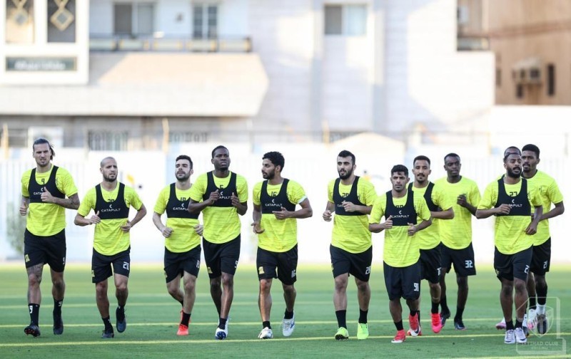 جانب من تدريبات فريق الاتحاد.