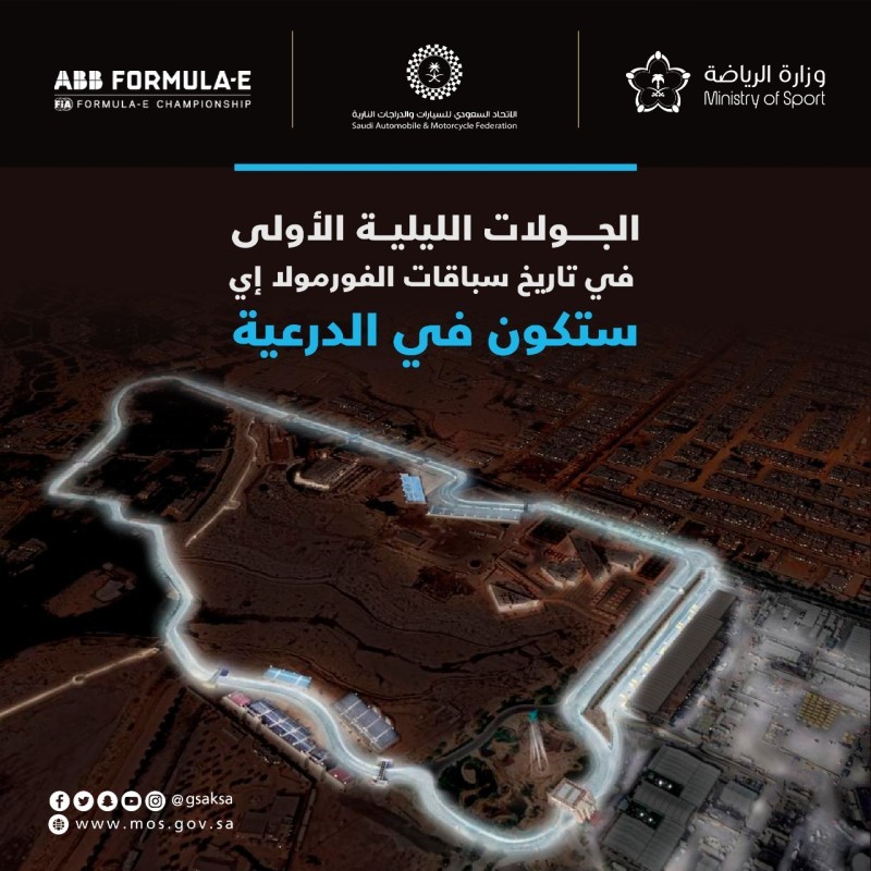 تستضيف الدرعية أول سباقات ليلية على الاطلاق للفورمولا (E) وستجري أحداث الجولة المزدوجة خلال يومي 26 و 27 من شهر فبراير القادم. حسب ما كشفت عنه صحيفة «سبورت اوتو» الأمريكية اليوم (الثلاثاء).