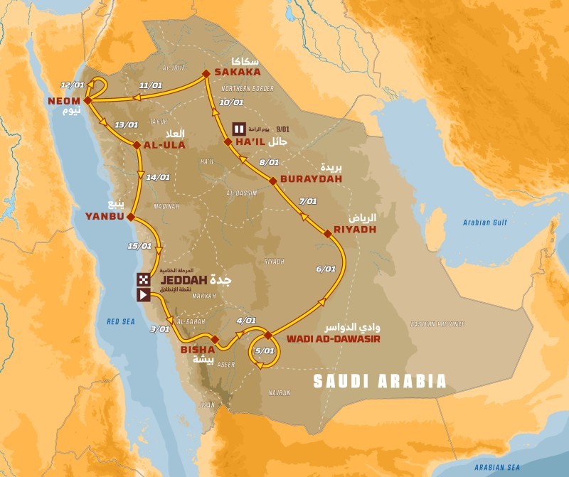 وتم خلال المؤتمر، الكشف عن تفاصيل المسار الجديد كليًّا لرالي داكار السعودية 2021، والذي سيقام للسنة الثانية على التوالي على أراضي المملكة، في الفترة من 3 إلى 15 يناير 2021م، وينطلق من محافظة جدة، ليقطع مسافة تبلغ 7646كم، بطول وعرض صحراء وتضاريس المملكة، مرورًا ببيشة ووادي الدواسر ثم الرياض وبريدة وحائل وسكاكا ونيوم والعُلا وينبع، وصولاً إلى خط النهاية في جدة مرة أخرى في 15 يناير المقبل، ويتخلل السباق يومٌ لراحة السائقين والفرق المشاركة في 9 يناير بمدينة حائل.