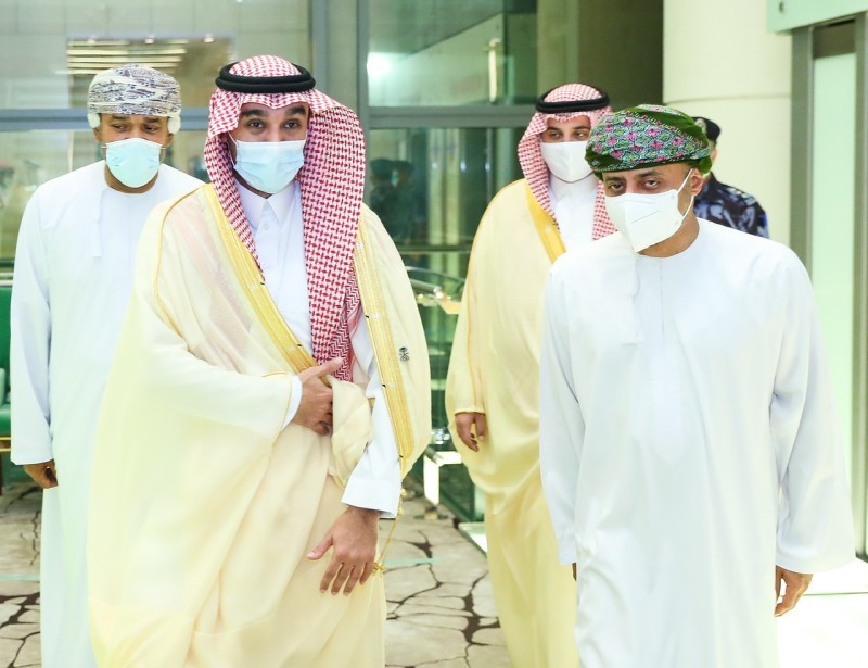 وكان في استقباله في مطار مسقط الدولي رئيس اللجنة الأولمبية العمانية خالد بن حمد البوسعيدي، ونائب رئيس اللجنة الأولمبية العربية السعودية الأمير فهد بن جلوي بن عبدالعزيز بن مساعد، وسفير خادم الحرمين الشريفين في مسقط عيد بن محمد الثقفي.