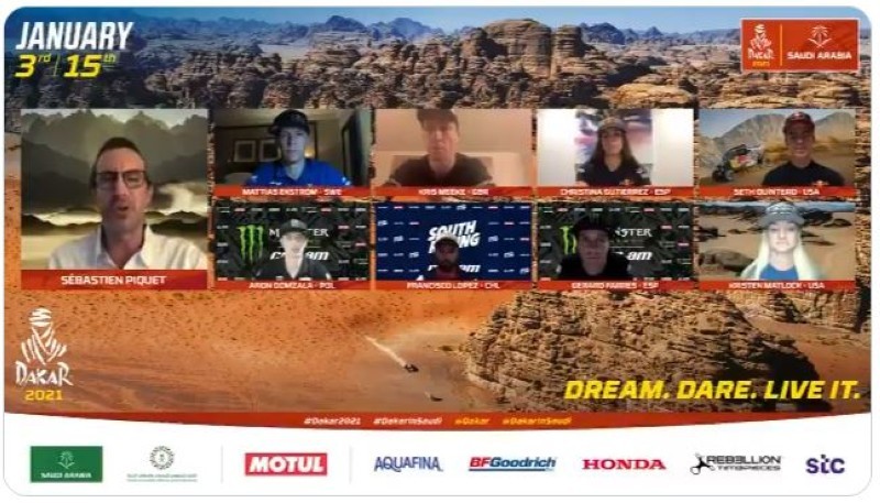عقد كبار المتسابقين في رالي داكار السعودية 2021 مؤتمراً صحفياً «افتراضيا»، للحديث عن السباق المرتقب الذي سينطلق في الفترة من 3 إلى 15 يناير 2021 من جدة، ويستمر 13 يوماً.