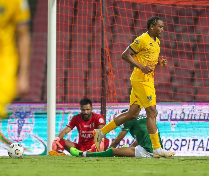 مهاج التعاون توانمبا ينطلق فرحا بهدفه في مرمى الأهلي وسط حسرة العويس.