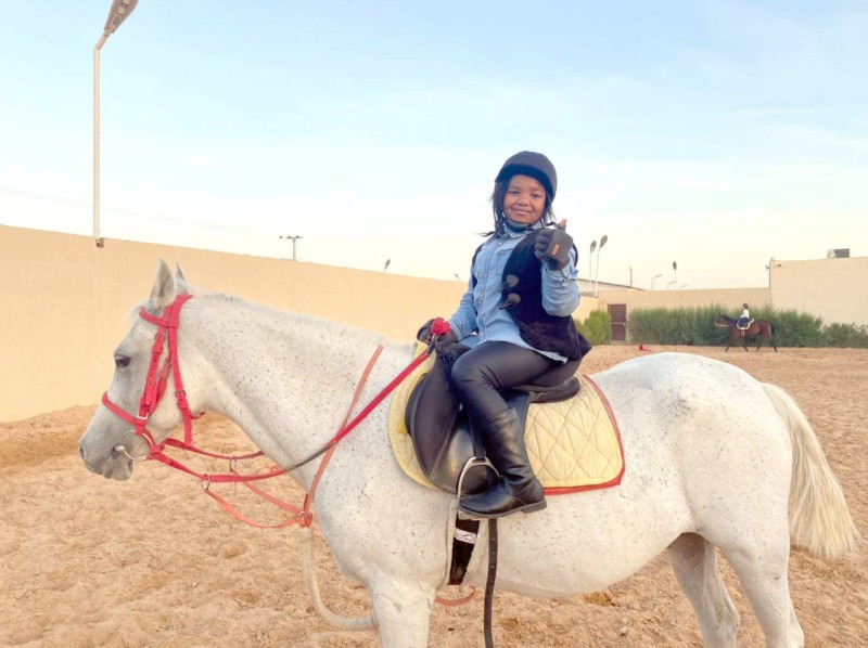 تطمح الطالبة في الصف الثاني الابتدائي دانا خالد إلى المشاركة في سباقات الخيل، وإقامة بطولات تتناسب مع عمرها، وتؤكد دانا لـ«عكاظ» أنها تتدرب كل يوم في إسطبل خيل لتكون جاهزة للمشاركة في بطولة تناسب عمرها، وتضيف أنها تعلمت من الخيل القوة والتحمل «أتمنى أن أكون مالكة لإسطبل خيل مستقبلا»، مشيرة إلى أن والدتها ووالدها يدعمانها في ممارسة رياضتها المفضلة.