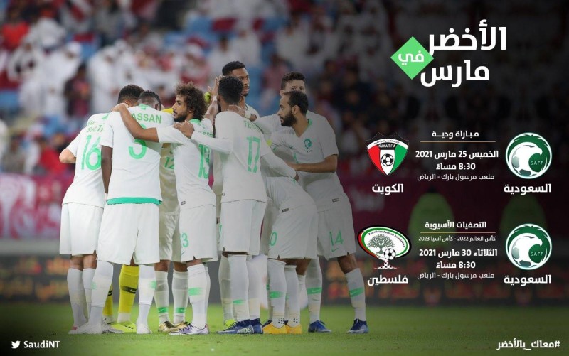 وتأتي المباراة استعداداً للمواجهة التي ستجمع «الأخضر» بشقيقه الفلسطيني يوم 30 مارس القادم ضمن التصفيات الآسيوية المشتركة المؤهلة لكأس العالم 2022 وكأس آسيا 2023.