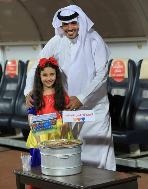 وفي التفاصيل.. بادرت الطفلة وجد بنت علي الخليفة، إدارة النادي والجهاز الفني والإداري والطبي واللاعبين، في أول تدريب للفريق على ملعب النادي مساء يوم الأربعاء، بعد العودة من المعسكر الخارجي بالمجر؛ بتقديم «كيكة» مكتوب عليها «الحمدلله على السلامة»، وقد حظيت الطفلة بتقدير الجميع على هذه البادرة الجميلة.