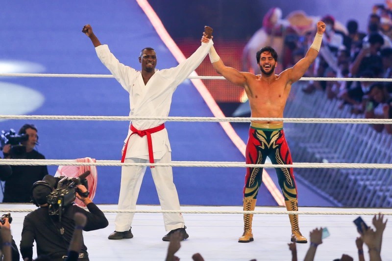 وتعالت صيحات الجمهور متفاعلة مع نجوم WWE لدى دخولهم إلى النزال، وسط احترافية في الأداء والتنظيم، مدعومة بشاشات تفاعلية تتيح للزوار مشاهدة اللقطات الحاسمة مصحوبة بموسيقى فعاليات «WWE كراون جول» والألعاب النارية، ليعيش الجمهور أجواء النزالات العالمية.