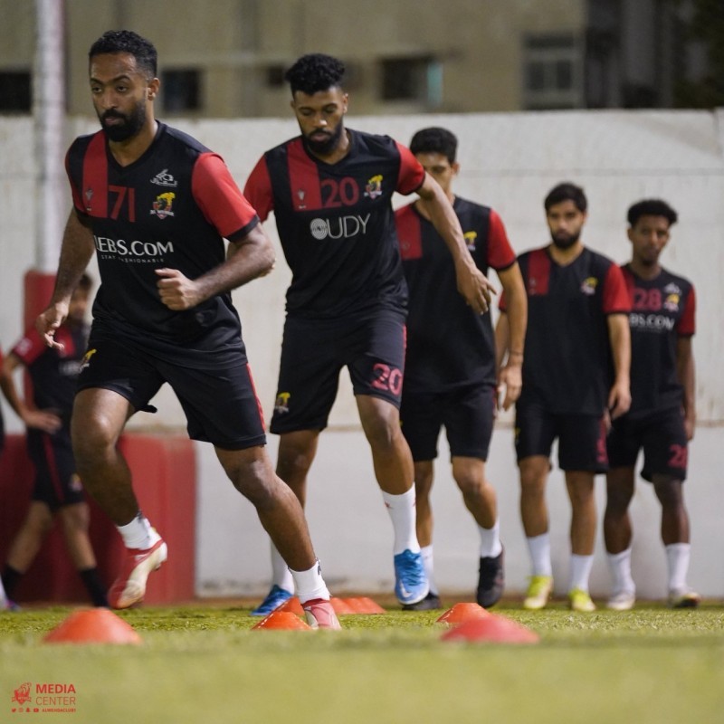 جانب من تحضيرات الفرسان لمواجهة الخليج يوم غد. (المركز الإعلامي)