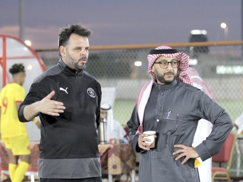 رئيس القادسية وبجانبه المدرب محمد دحمان.