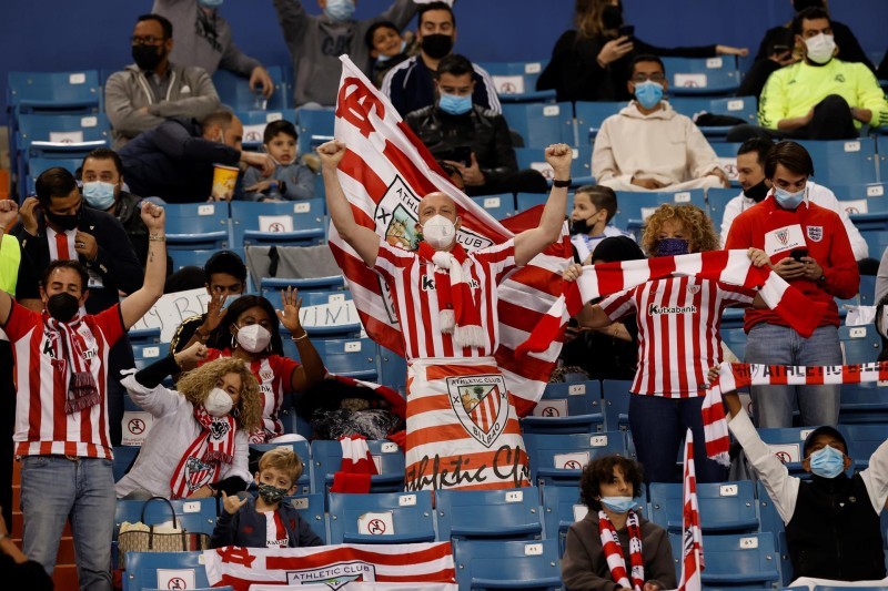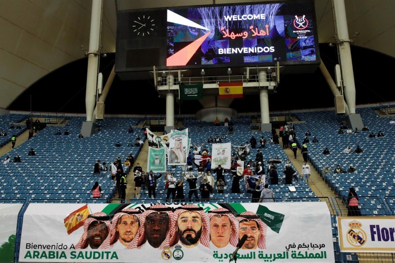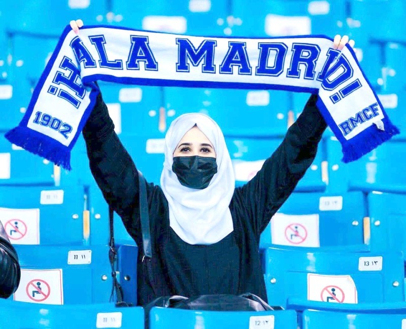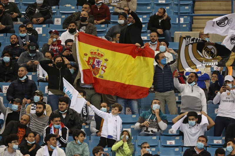 و فاز ريال مدريد على أتليتيك بلباو 2-0 ليتوج بأول لقب له عام 2022. وحمل المشجعون لافتات لرئيس ريال مدريد فلورنتينو بيريز ونجم الفريق كريم بنزيما وهما يرتديان الزي السعودي.