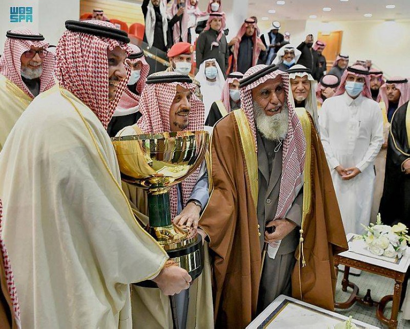 وعند وصول سموه ميدان الملك عبدالعزيز للفروسية بالجنادرية كان في استقباله صاحب السمو الملكي الأمير فيصل بن خالد بن عبدالعزيز مستشار خادم الحرمين الشريفين، وصاحب السمو الملكي الأمير بندر بن خالد الفيصل رئيس مجلس هيئة الفروسية رئيس مجلس إدارة نادي سباقات الخيل.
