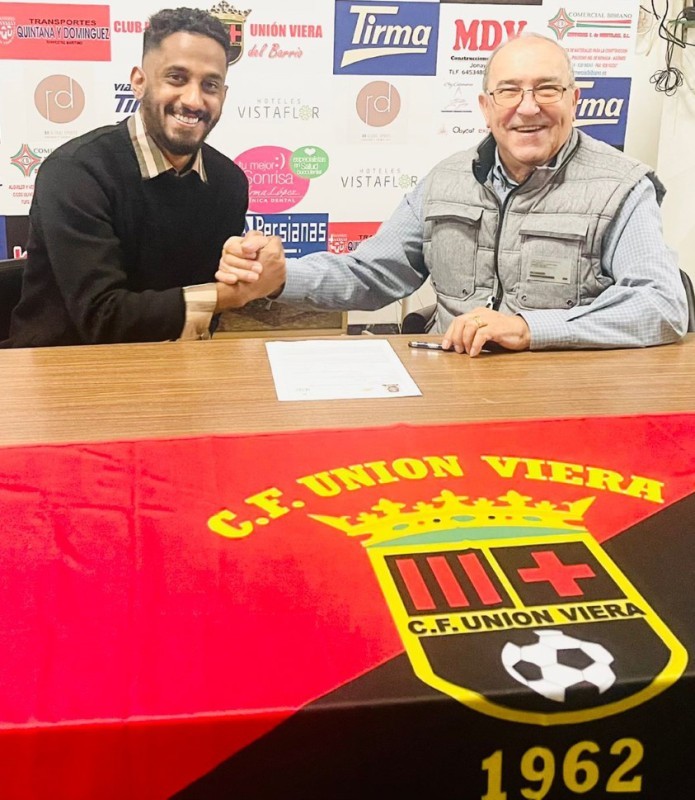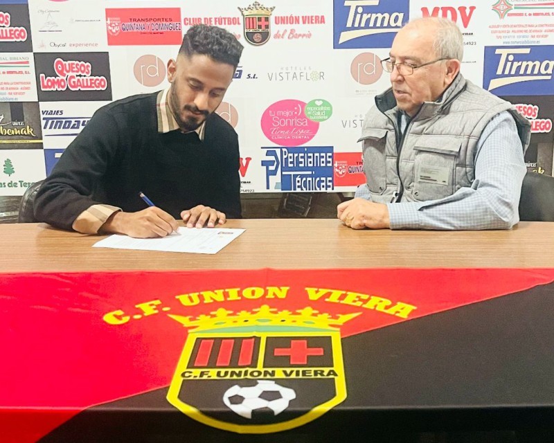 وقام بتوقيع العقد مع اللاعب رئيس نادي أونيون فييرا الإسباني خوان فرانسيسكو راموس غارسيا بمقر النادي في مدينة لاس بالماس دي غران الواقعة في جزر الكناري بإسبانيا، وبحضور مدير الرياضة في النادي فرانسيسكو تو هيو.