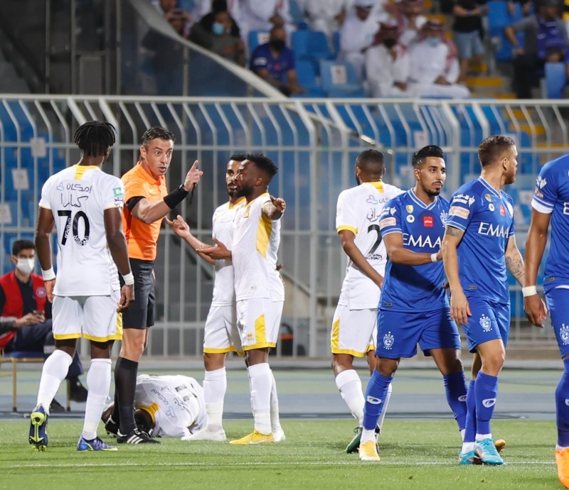 الحكم الرابع خالد الطريس يستدعي حكم الساحة بسبب كثرة احتجاجات مدير الكرة في نادي الاتحاد حامد البلوي على القرارات التحكيمية مما أدى إلى إنذاره بالكرت الأصفر من قبل حكم المباراة.